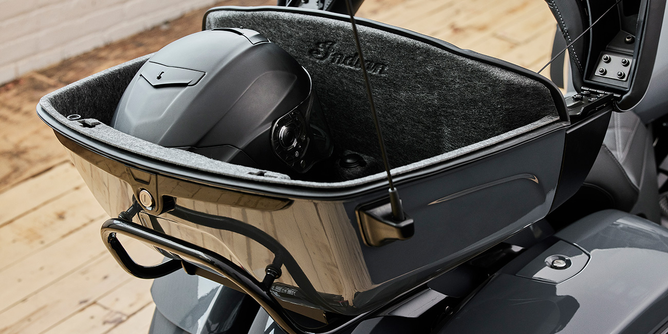 Más de 133 litros de almacenamiento resistente a la intemperie y con cierre remoto pueden con todo el equipo que tengas. O puedes quitar el maletero de desmontaje rápido para reducir el peso y lucir una imagen completamente nueva.